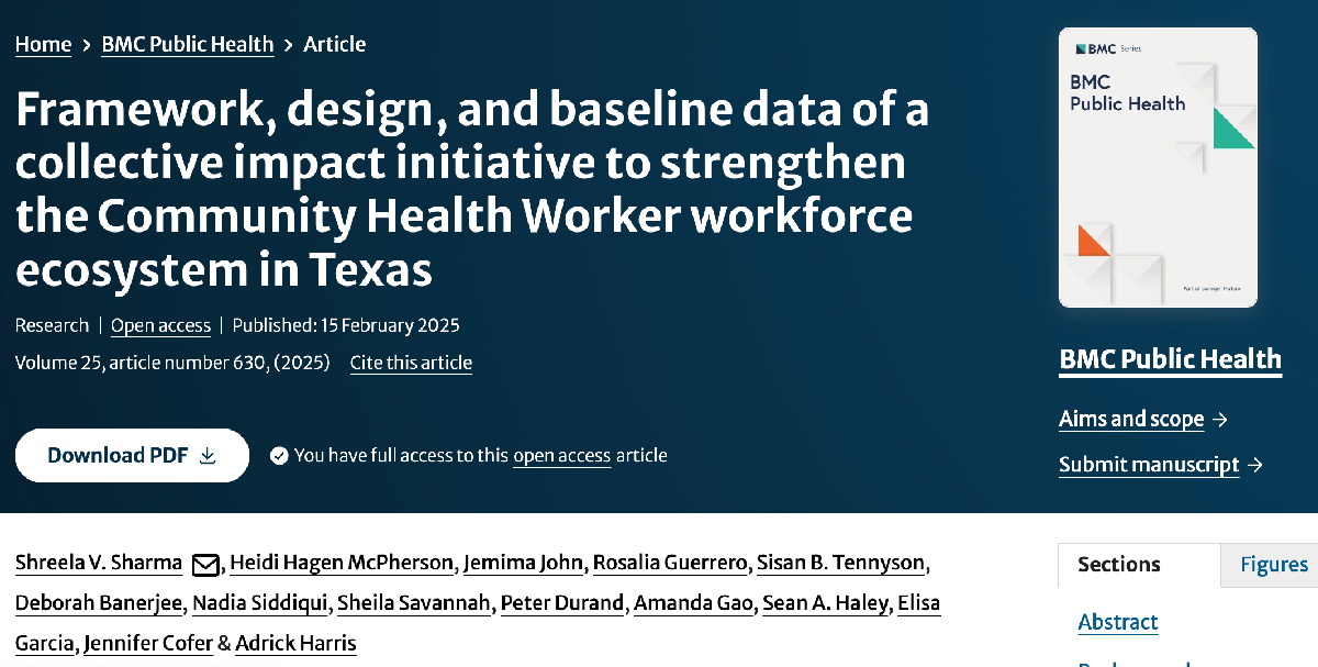 Our academic, peer-reviewed paper outlines the journey mapping process and the collective impact approach to strengthening the CHW workforce across the Greater Houston region. Strategies and priorities were developed based on CHW voices and engaging stakeholders across all efforts.