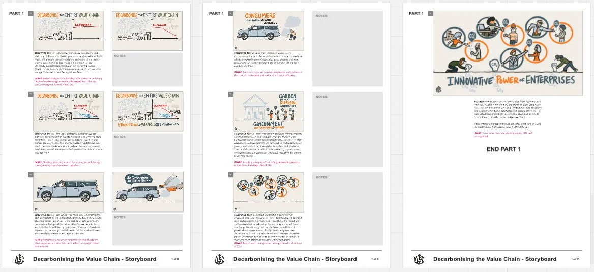 For the standard project, we produce two versions: (1) a rough pencil version to block out scenes and characters, followed by (2) a detailed storyboard with close-to-final artwork.