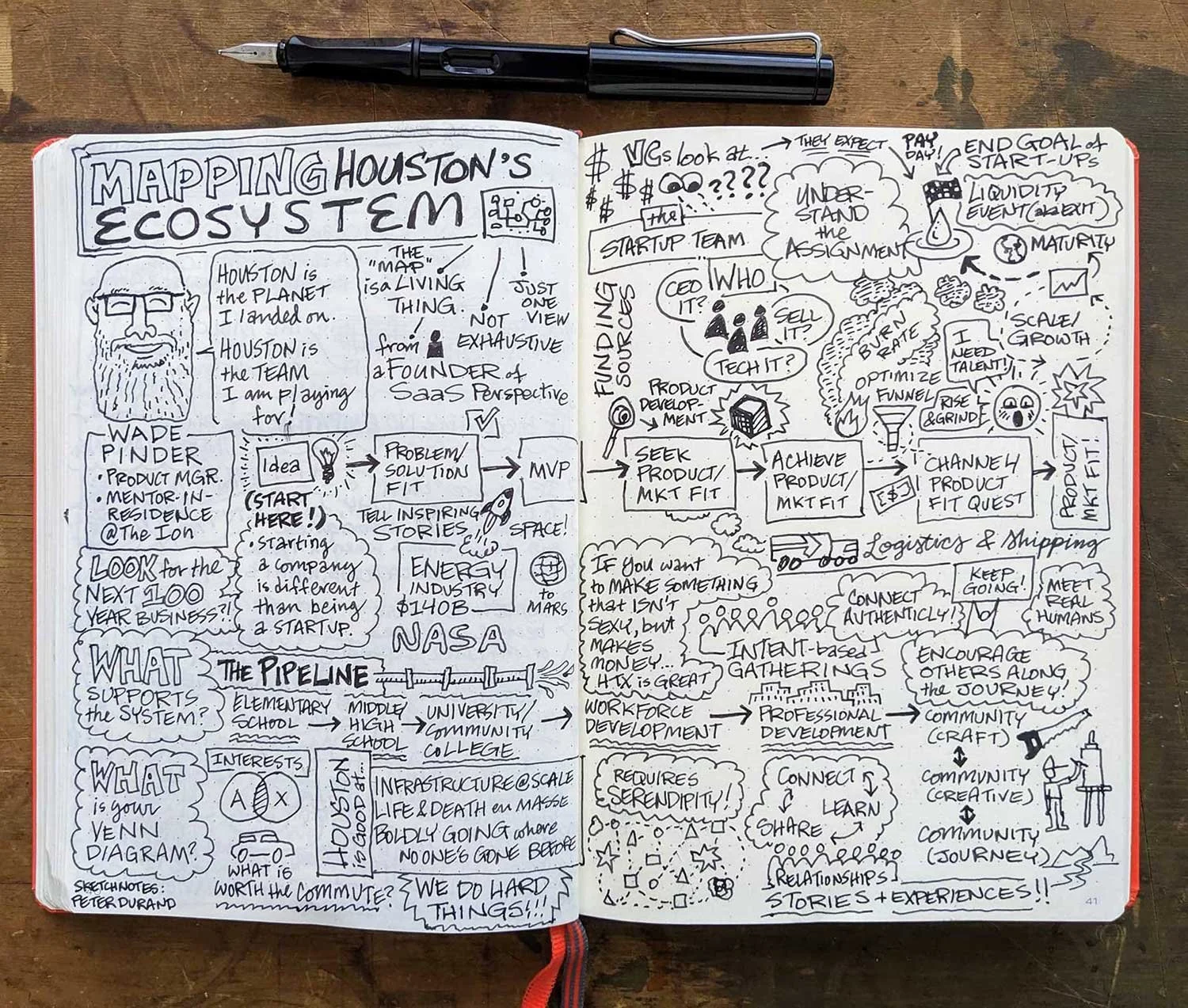 ABOVE: Visual notes (aka sketchnotes) created by Peter Durand in his personal notebook.