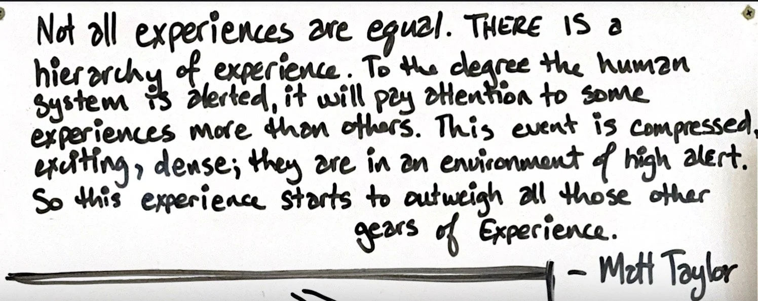 "This event is compressed, exciting, dense; they are in an environment of high alert, so this experience starts to outweigh all those other gears of experience."