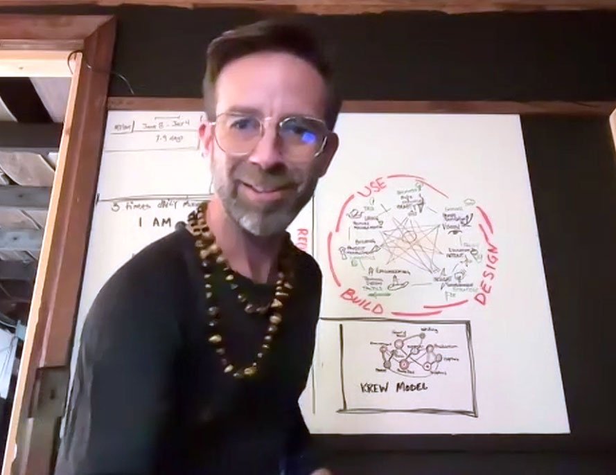 Ryan Romsey was modeling the model-maker behavior in real time, building mashup models on his home office whiteboard while the rest of us talked (see screenshot). That's the move right there — make the thing while you're discussing the thing.