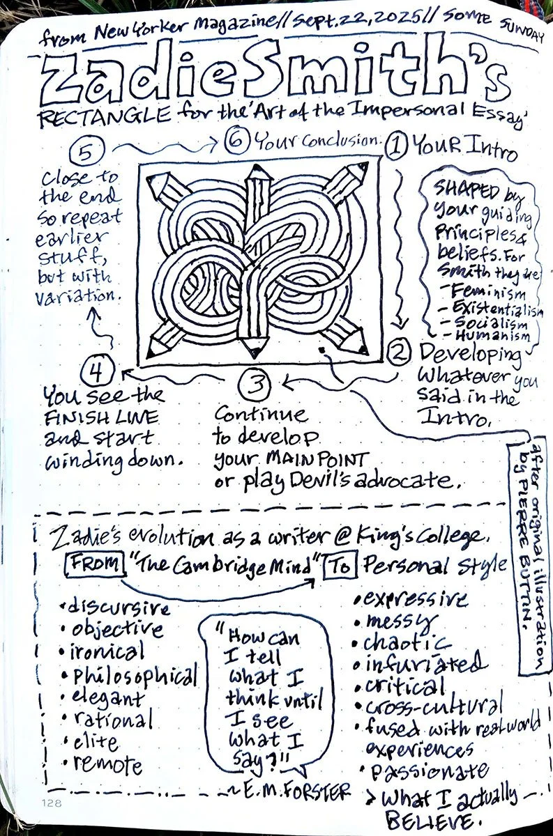 I thought of a particular English teacher friend (and my college essay-writing daughter) while reading Zadie Smith's piece in The New Yorker magazine on “The Art of Writing the Impersonal Essay.“